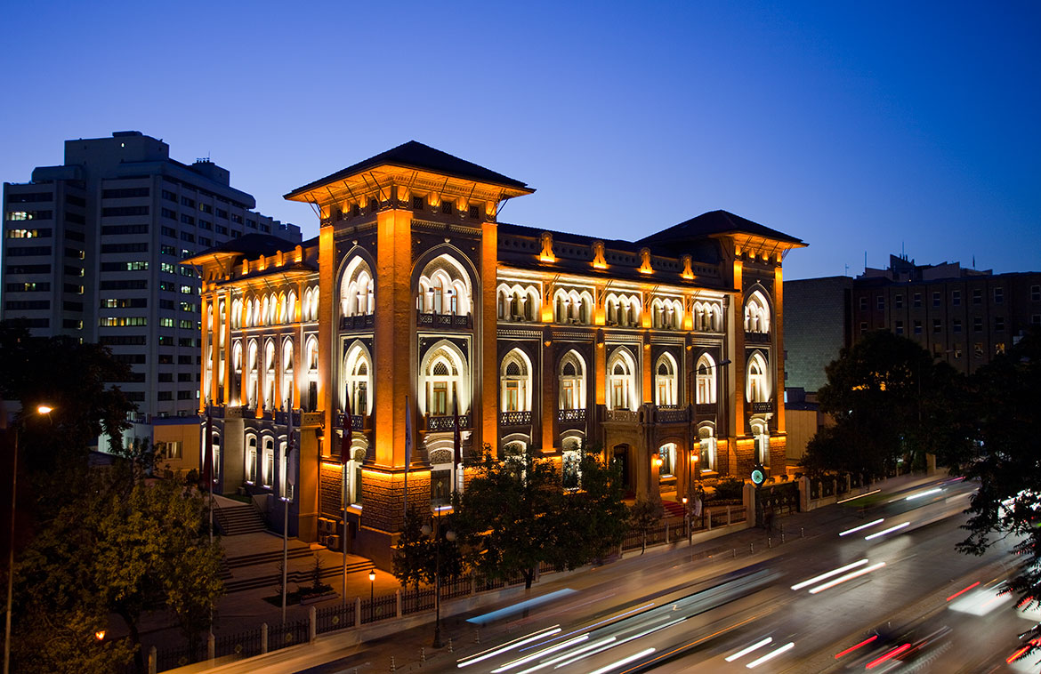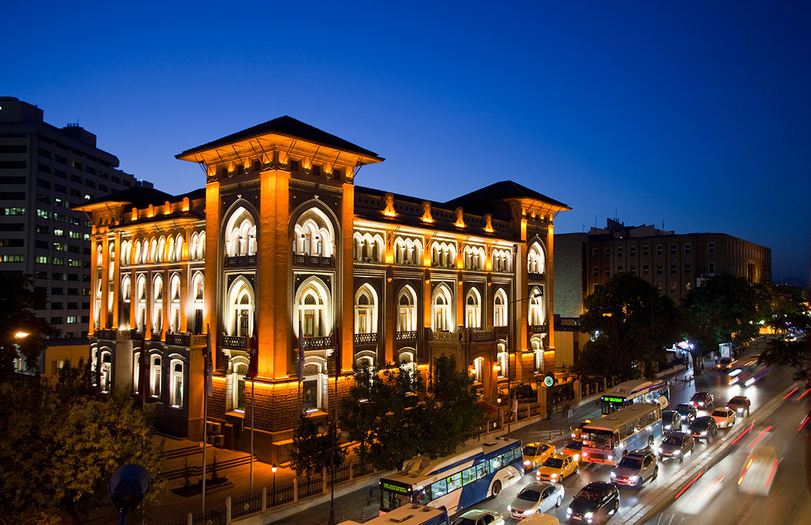 T.C. Ziraat Bank was the first center of western finance and trade in Turkey. Despite international expansion, the bank remains headquartered in Turkey, housed in a prominent, historical building in the heart of Ankara. When T.C. Ziraat Bank wanted to revitalize its headquarters, it relied on Traxon & e:cue to highlight the structure’s architectural splendor, maintain its historical integrity, and provide a highly competitive price. Traxon’s Liner XB Amber, Liner XB Warm White, and Dot XL-6 Warm White were applied to the bank’s façade. The exterior walls and columns were illuminated in a rich Amber graze and its seemingly-weightless arched windows, balconies, and niches were accented in Warm White. These lighting solutions emphasize the bank’s unique, Ottoman-influenced architecture and respect its historical significance. e:cue’s advanced Butler XT is used to control the 250 lighting fixtures applied to the graceful lines of the historical building, and the complete solution is triggered by a single Glass Touch T12. On weekdays, the light is static, with illumination levels adjusted between 40% and 70%. On weekends, the light is dynamic, with a hint of motion every hour, controlled by the Butler XT’s internal timeclock.